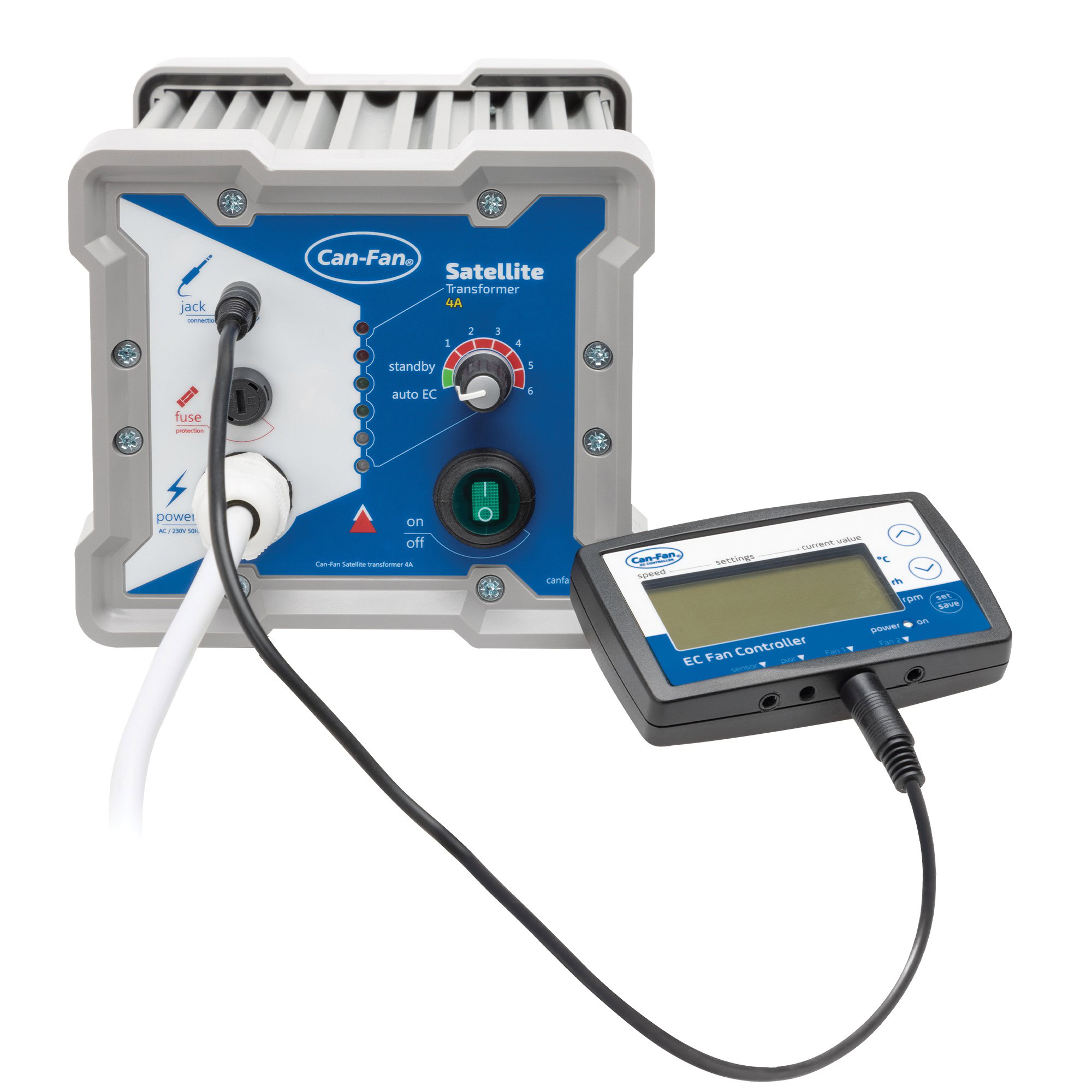 Upgrade your standard AC fans with the Can-Fan Satellite 4A Fan Speed Controller. This innovative 6-step transformer connects your existing AC extractors to the sophisticated Can-Fan LCD EC Controller. It allows you to unlock advanced environmental features—such as temperature, humidity, and day/night settings—while ensuring smooth, noiseless operation without the electrical “hum.”