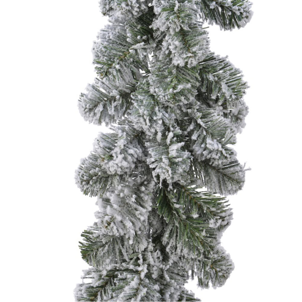 Measuring 180cm in length, this garland is versatile enough to drape across stair banisters, frame doorways, style mantelpieces, or decorate retail displays. The snowy detailing creates a fresh, wintry effect, making it a beautiful centrepiece for festive decorating. Built on a sturdy wired frame, the garland can be shaped, draped, or secured easily to suit your chosen space, ensuring a professional, polished look.